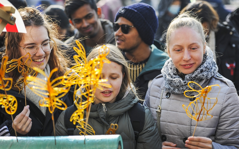 지난 1월 21일, 산둥(山東)성 짜오좡(棗莊)시 쉐청(薛城)구 타오좡(陶莊)진 뤼차오(魯橋)촌에서 제1회 춘절(春節, 음력 설) 민속문화축제가 개최됐다. 짜오좡대학 외국인 유학생 10여 명이 초청을 받아 뤼차오촌을 방문해, 시장을 둘러보며 용춤 추기와 중국 간식 맛보기, 서예 등 다양한 체험을 했다. 사진/IC