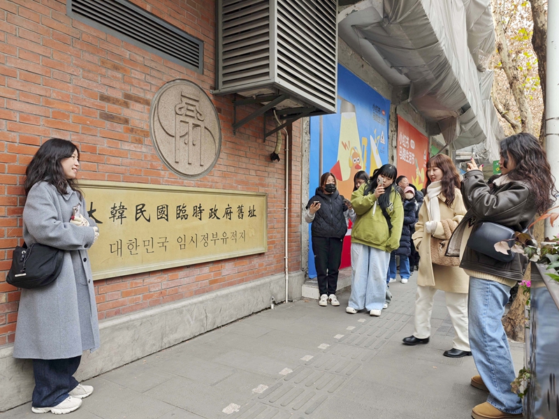 지난 1월 11일, 한국인 관광객이 상하이 대한민국 임시정부 유적지에서 기념사진을 찍고 있다. 사진/VCG