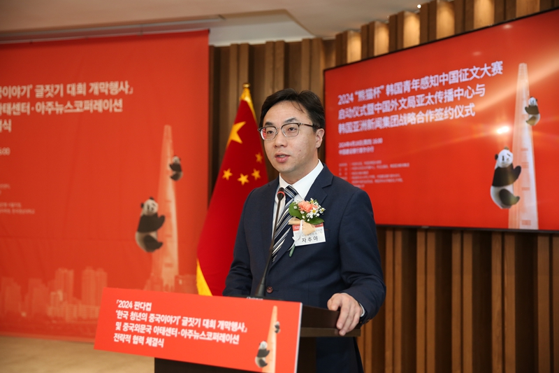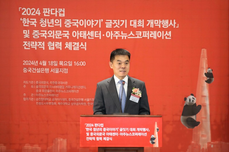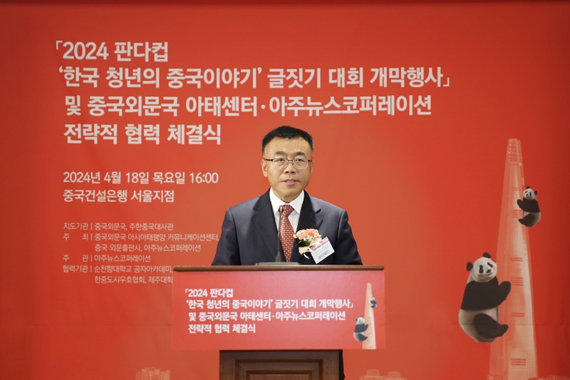 천원거 중국외문국 아시아태평양 커뮤니케이션센터 주임이 축사를 하고 있다.