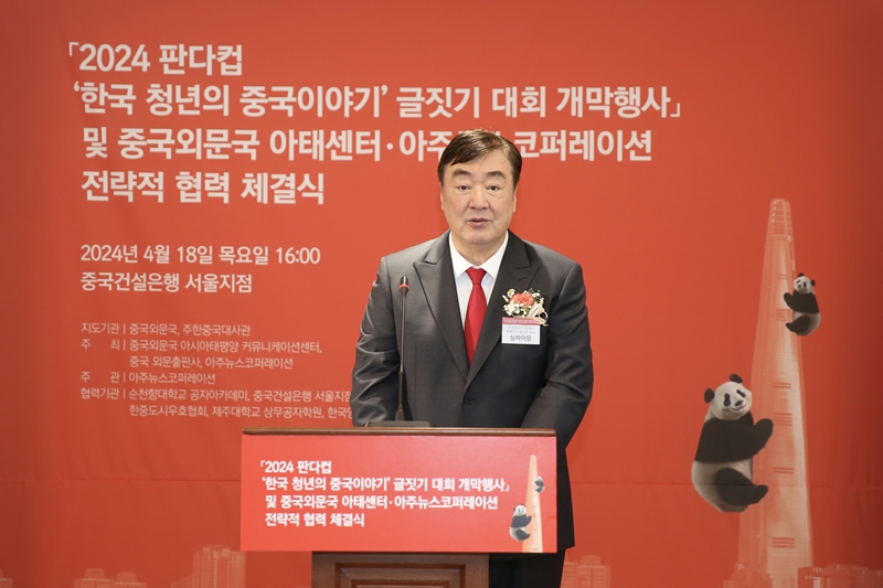 곽영길 아주뉴스코퍼레이션 회장은 “최근 몇 년간 한중 두 나라 국민들 사이, 특히 젊은 세대를 중심으로 확산되는 부정적 인식이 매우 안타까웠다며 이는 한중 양국이 함께 해결해나가야 할 과제”라고 지적하며 “이러한 상황에서 두 나라는 2024 판다컵 글짓기 대회를 통해 서로 깊이 이해할 수 있는 소중한 기회로 삼기를 바란다"고 말했다. 곽 회장은 또 “논어에 ‘군자는 문으로 친구를 맺고, 친구로서 인을 이루는 것이다(君子以文會友,以友輔仁)’라는 말을 마음에 새겨 양국 사이의 문화적 이해와 소통을 더욱 견고히 하고 양국 청년들의 오해와 갈등을 해소하는 한편, 서로를 이해할 수 있는 소중한 기회로 삼아야 할 것”이라고 말했다.