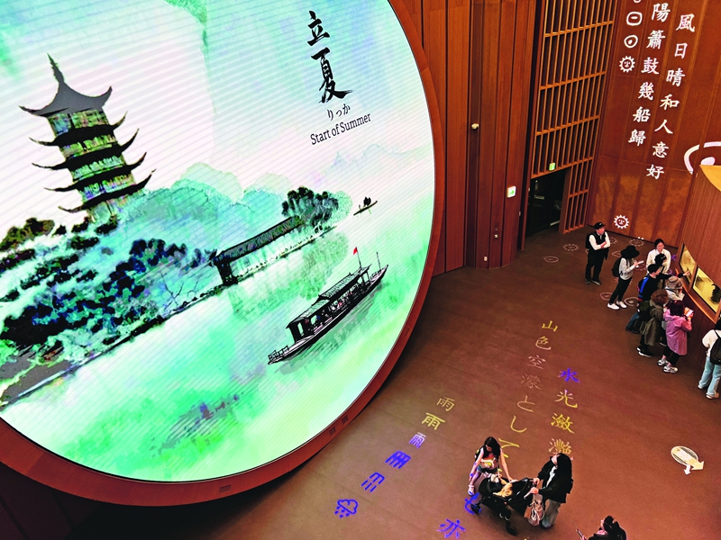 자연의 법칙을 더 잘 활용해 생산하고 생활하기 위해 중국인은 태양의 주기적인 운동을 관찰했다. 일 년 중 절기와 기후 변화, 물후(物候, 생물학적 현상의 변화) 등의 변화 법칙을 인식해 24절기라는 지식 체계를 갖추고 일상생활과 농업에 적용해 실천하며 발전시켜 나갔다. 이는 유네스코 인류무형문화유산으로 등재됐다. 중국관은 대형 멀티미디어 장치를 통해 아름다운 예술적 표현으로 24절기의 중요한 가치를 전하고 있다.