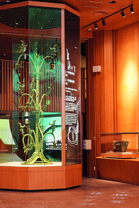 ‘천인합일’ 이념은 하루아침에 생겨난 것이 아니라 아주 먼 고대에서부터 중국인들의 마음속에 서서히 뿌리내려온 것이다. 삼성퇴(三星堆), 양저(良渚), 은허(殷墟) 세 가지 문명 유적 전시가 이를 가장 잘 보여준다. 삼성퇴에서 출토된 ‘상청동신수(商青銅神樹)’는 세계에서 발견된 단일 청동 문물 중 가장 큰 규모다. 여기에는 고대 사람들이 신성한 나무를 매개로 인간과 하늘의 정신적 ‘합일(合一)’을 이루고자 했던 염원이 담겨 있다. 양저 문명 유적은 세계에서 발견된 수리(水利) 시스템 중 가장 오래되고 규모 또한 가장 크다. 고대 사람들의 천인(天人) 관계에 대한 변증법적 사고방식을 반영하고 있다. 즉, 자연을 존중하면서 동시에 근면함과 지혜를 통해 자연에 순응하고 자연을 개척하는 것을 말한다. 은허에서 출토된 ‘후모무정(后母戊鼎)’을 비롯한 청동기는 도시 계획이 체계적이고 과학적으로 이루어진 고도로 발달한 청동 문명을 보여주며, 인간과 자연의 조화로운 공존 개념을 잘 드러내고 있다.