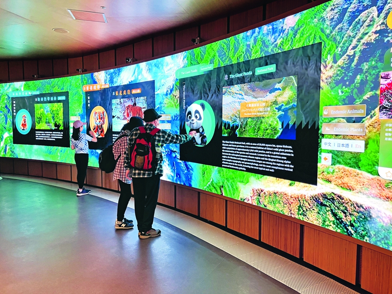 녹수청산이 바로 금산은산이다(綠水青山就是金山銀山). 이 소박한 개념은 ‘천인합일’ 중화 전통의 지혜를 계승 및 발전시켰으며 생태환경 보호와 경제사회 발전 간의 관계를 밝혀준다. ‘녹수청산’ 주제의 전시 구역을 살펴보면, ‘천추(千秋)의 지혜’, ‘생태 관리’, ‘도시 관리’, ‘국립 공원’ 등 다양한 전시 항목을 선보이고 있으며 영상을 통해 관람객들에게 중국의 고대와 현대의 생태적 노력과 성과를 보여준다. 세계 수리공학의 시조인 도강언(都江堰)과 천 년의 농업 유산 상기어당(桑基魚塘, 양잠·양어 순환형 농업)에 담긴 고대의 생태적 지혜를 확인할 수 있으며, 샤먼(廈門) 윈당후(篔簹湖)의 ‘어류 멸종에서 백로 서식지 복원’까지의 생태계 회복 과정과 싸이한바(塞罕壩)의 황량한 모래땅이 점차 녹지로 뒤덮힌 생태 기적 또한 목격할 수 있다. 또, 국립 공원의 귀여운 동물과 친밀한 교감을 나눌 수 있다.