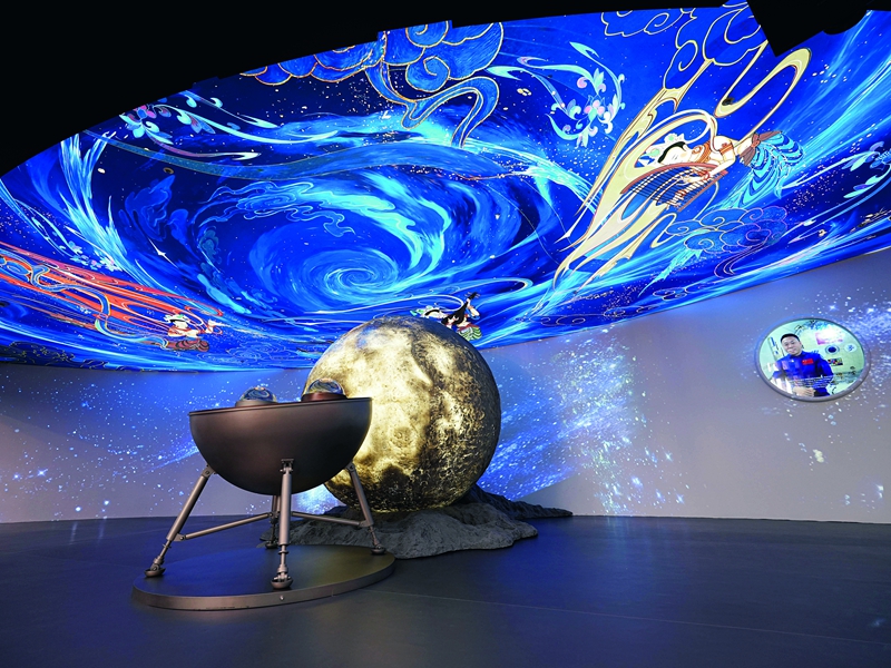 구천남승(九天攬勝) 전시에서는 중국관의 가장 진귀한 전시 작품, 바로 38만 킬로미터나 떨어진 달의 앞·뒷면에서 채취한 토양을 볼 수 있다. 이는 인류 역사상 처음으로 달의 앞면과 뒷면의 토양이 가까이서 동시에 전시되는 것이다. 창어(嫦娥) 5호가 2020년 12월 채집해 온 달의 앞면 토양 시료는 그동안 인류가 알고 있던 달의 화산 활동 역사를 바꿔놓았다. 분석 결과, 화산 활동이 약 8억 년에서 10억 년 더 지속됐음을 알 수 있었다. 창어 6호가 2024년 6월 갖고 온 달의 뒷면 토양은 달 뒷면의 ‘첫 번째 발자국’으로 43억 년 전 태양계의 흔적을 고스란히 간직하고 있다. 이 전시에서 중국 우주정거장의 우주비행사와 연결해 그들이 전하는 메시지를 듣고 우주정거장에서의 업무와 생활에 대해서도 알아볼 수 있다.