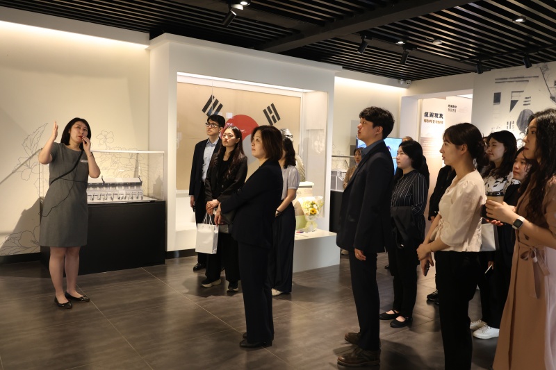 ‘중한 청년 외교관 교류사업’에 참가한 한국 대표단이 중국 외교부 관계자들과 함께 충칭 대한민국 임시정부 청사 전시관을 방문했다.