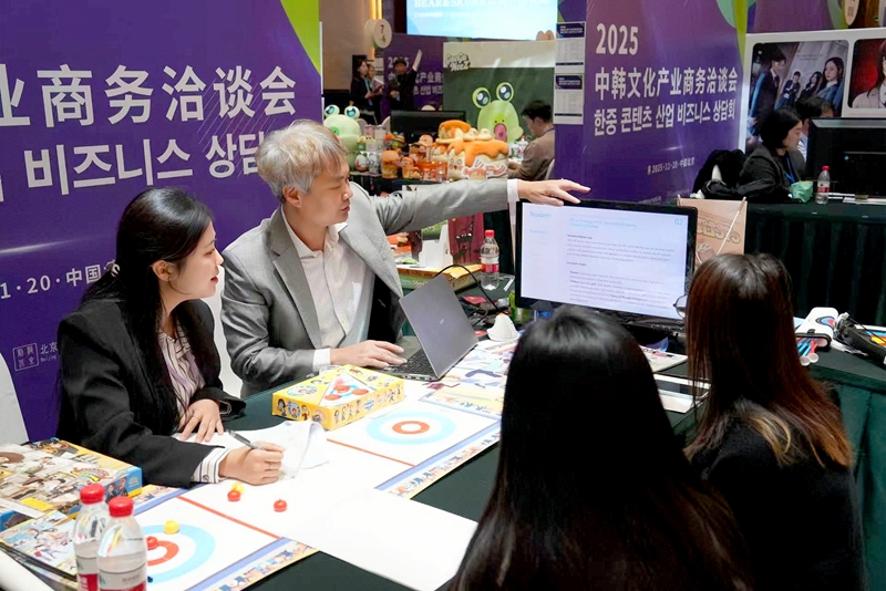 대한무역투자진흥공사(KOTRA) 베이징(北京) 대표처와 한국콘텐츠진흥원 베이징 대표처가 공동 주최한 2025 중한 콘텐츠 산업 비즈니스 상담회가 지난 11월 20일 베이징(北京)에서 개최됐다. 행사에서 중한 양측 업체가 상담을 진행하고 있다. 사진/KOTRA 베이징 대표처 제공