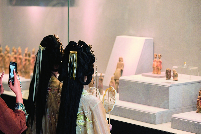 쌍계(雙髻, 정수리 좌우에 두 개의 상투를 틀어 올린 머리 모양) 머리, 볼에는 연지를 찍고 두 손을 맞잡은 채 나란히 서 있는 높이 17cm 남짓의 채회도(彩繪陶, 채색 도기) ‘여용(女俑, 여자 인형 부장품)’ 한 쌍은 북위(北魏) 시대에 제작된 것으로 추정된다. 뤄양 박물관에 있는 수많은 부장품 인형 유물 가운데 하나였을 뿐 처음엔 그다지 눈에 띄는 존재는 아니었다. 하지만 몇 달 전, 한 쌍의 여용은 소셜미디어에서 뜻밖의 인기를 끌며 누리꾼으로부터 ‘천 년 전 절친’이라는 애칭을 얻었고, 순식간에 뤄양 박물관에서 가장 핫한 포토존 중 하나가 됐다. 쇼트폼 플랫폼에서는 ‘천 년 절친과 같은 포즈로 사진 찍기’ 등 관련 해시태그 영상들의 조회 수가 1억 회를 돌파했다. 댓글난에는 고대 의복 변천 과정을 설명하는 학자부터 여용 앞에서 똑같은 포즈로 ‘절친 인증샷’을 남긴 관람객까지 다양한 댓글들이 이어졌다.