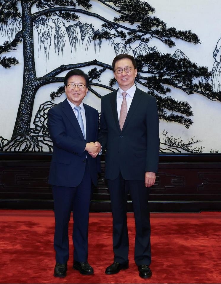 한정(韓正) 중국 국가 부주석이 지난 26일 베이징에서 박병석 한국 대통령 특사와 회동했다.